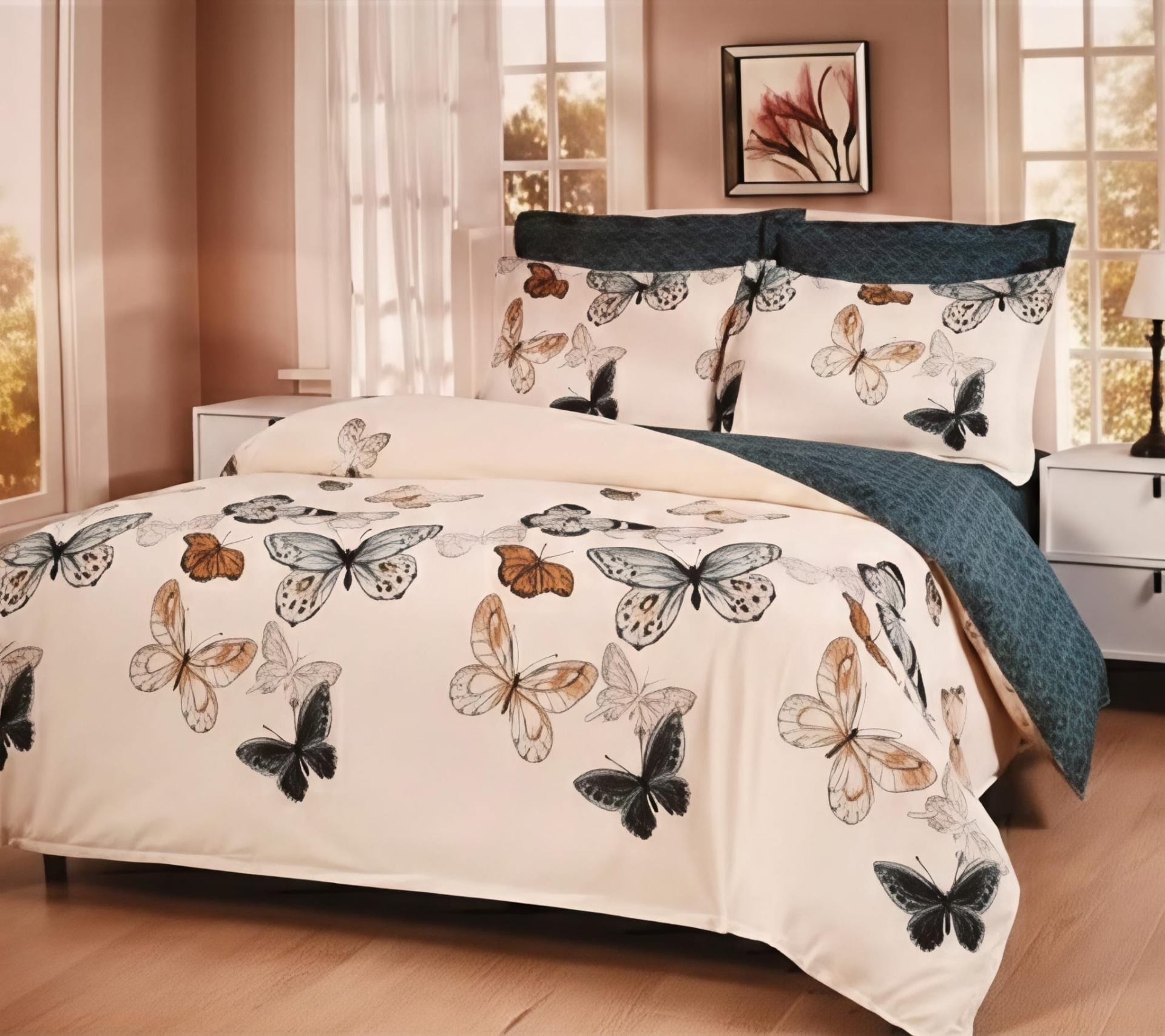 Mod de ambalare: Husa de plastic NU necesita calcare dupa spalare, si NU se sifoneaza la spalat. NU intra la apa, NU se decoloreaza si NU isi modifica aspectul. ideala pentru saltele de 140X200cm 160x200cm si 180x200cm. Pachetul contine: - cearceaf de pat 230x250cm ±5cm - cearceaf pentru pilota 200x230cm ±5cm - 2 bucati fete de perne 55x80cm ±5cm - 2 bucati fete de perne 75x75cm ±5cm Instructiuni de intretinere: - se spala la maxim 30°C automat pentru rezistenta indelungata a imprimeurilor. - nu se folosesc inalbitori chimici. - se calca la maxim 120°C. - se recomanda ca produsul sa fie spalat inainte de prima utilizare pentru o igiena corecta. INFO: Pozele sunt cu titlu de prezentare, astfel pot exista mici diferente de nuanta intre fotografia de prezentare si produs datorita prelucrarii fotografiei. ATENTIE: Imprimeurile de pe fetele de perne pot fi oricare parte din imprimeul de pe cearsaful de pilota in functie de cum este taiat materialul in procesul de croiala.