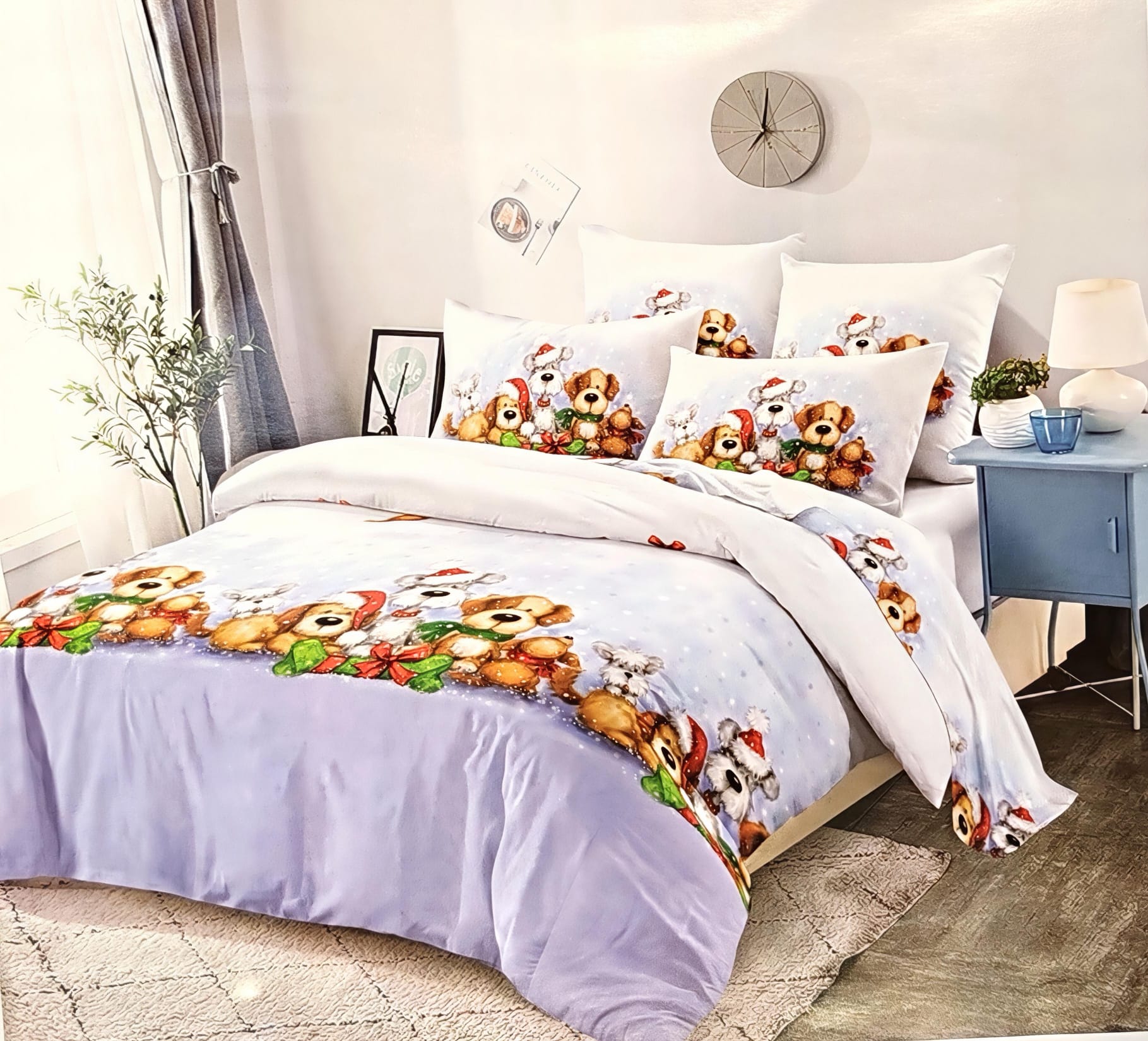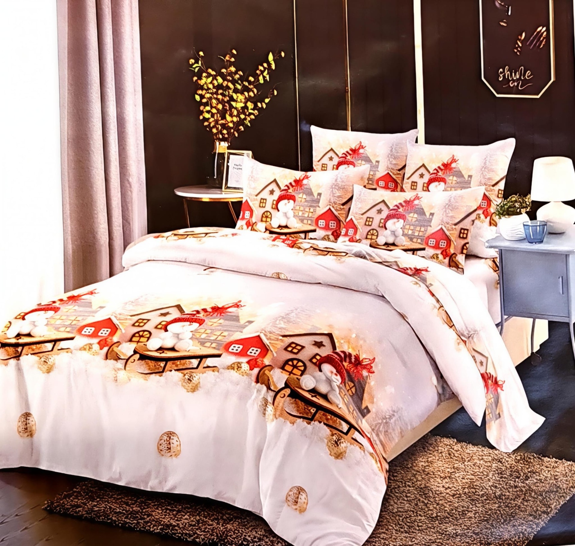 Lenjerie pat dublu, din Finet, Pucioasa, 6 Piese, Cearceaf cu elastic 230x250 cm