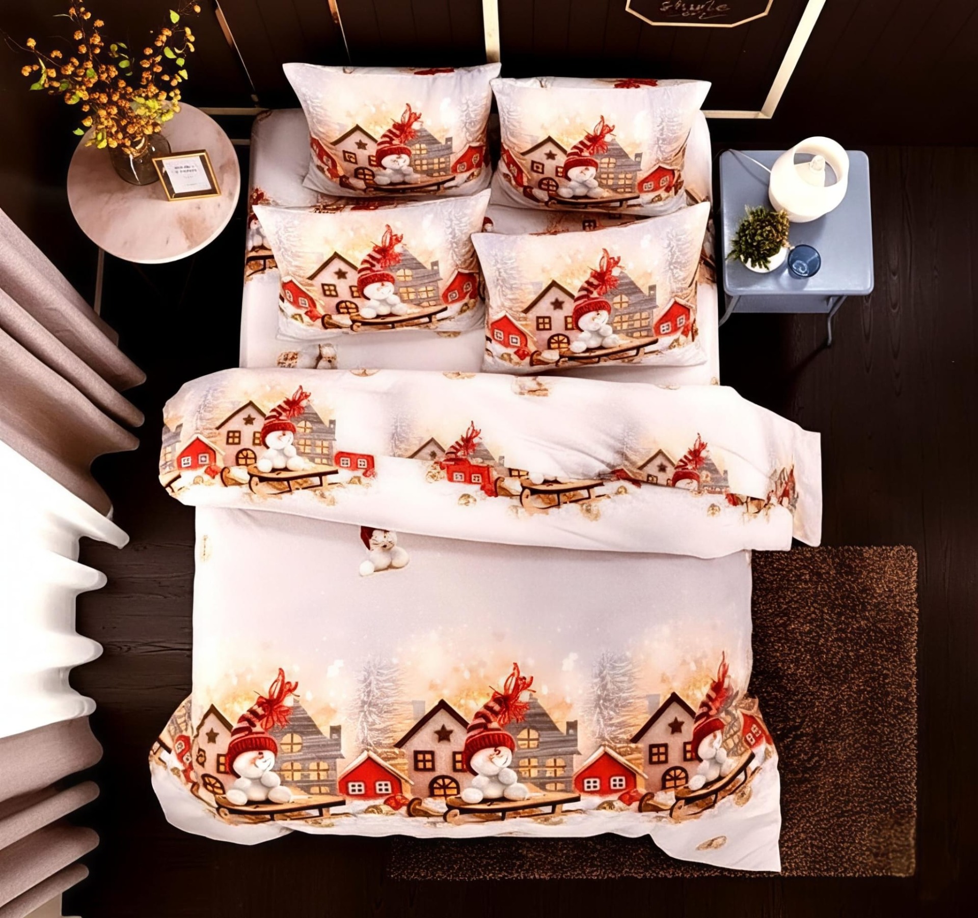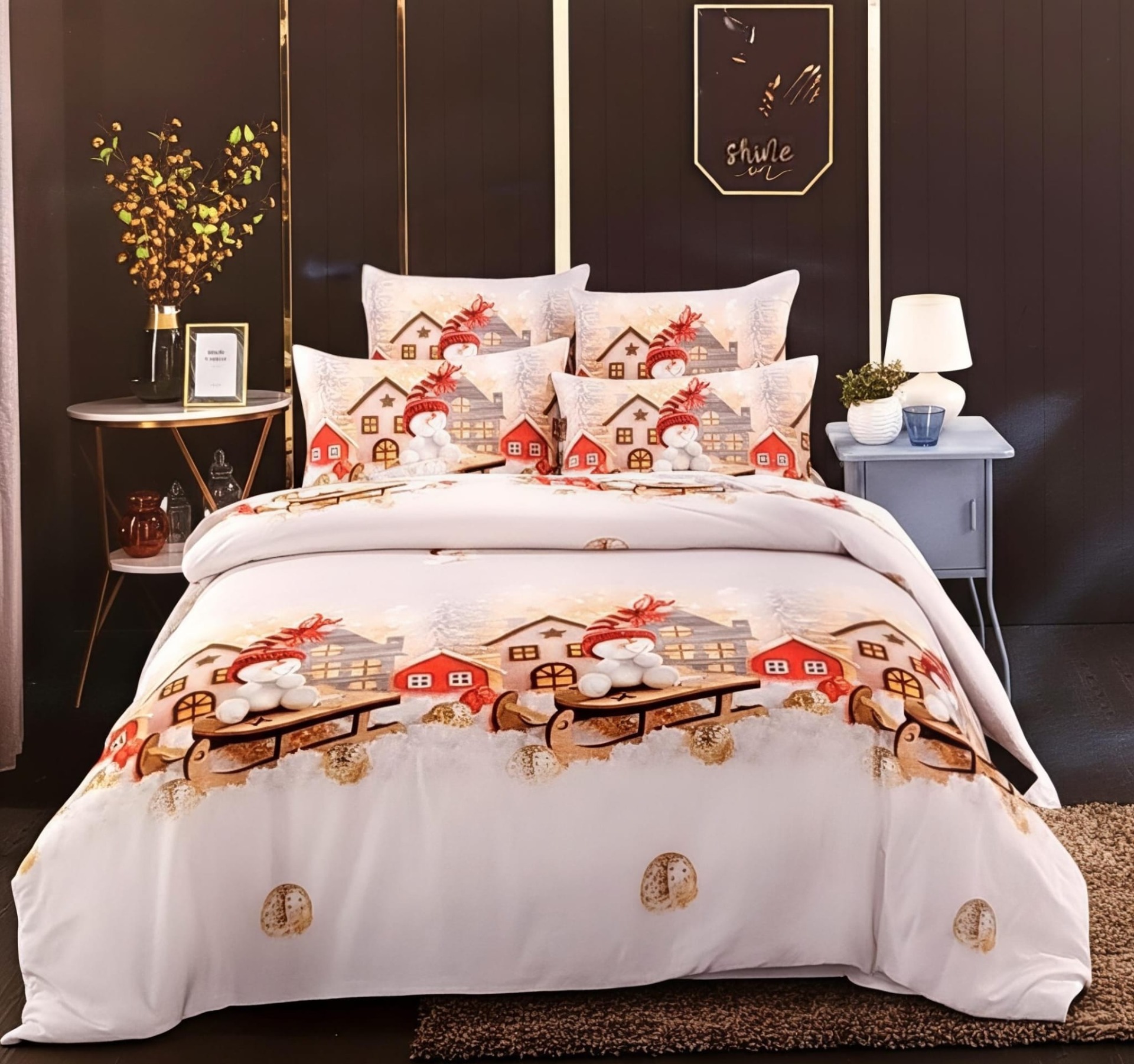 Pachetul contine: - cearceaf de pat 230x250cm ±5cm - cearceaf pentru pilota 200x230cm ±5cm - 2 bucati fete de perne 55x80cm ±5cm - 2 bucati fete de perne 75x75cm ±5cm Instructiuni de intretinere: - se spala la maxim 30°C automat pentru rezistenta indelungata a imprimeurilor.