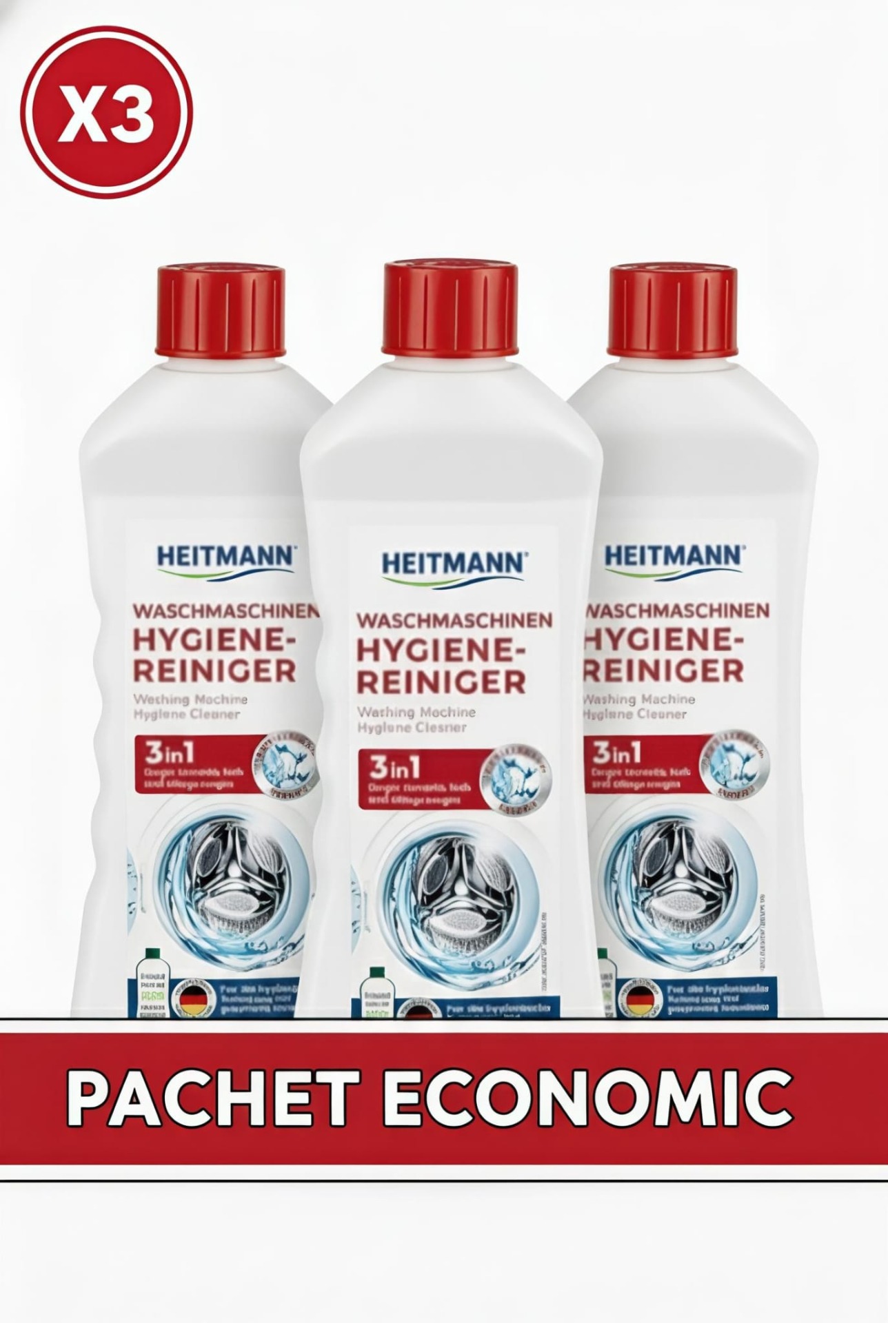 Pachet X3 Solutie 3in1 de curatare, decalcifiere si igienizare masina spalat rufe Heitmann, 250 ml