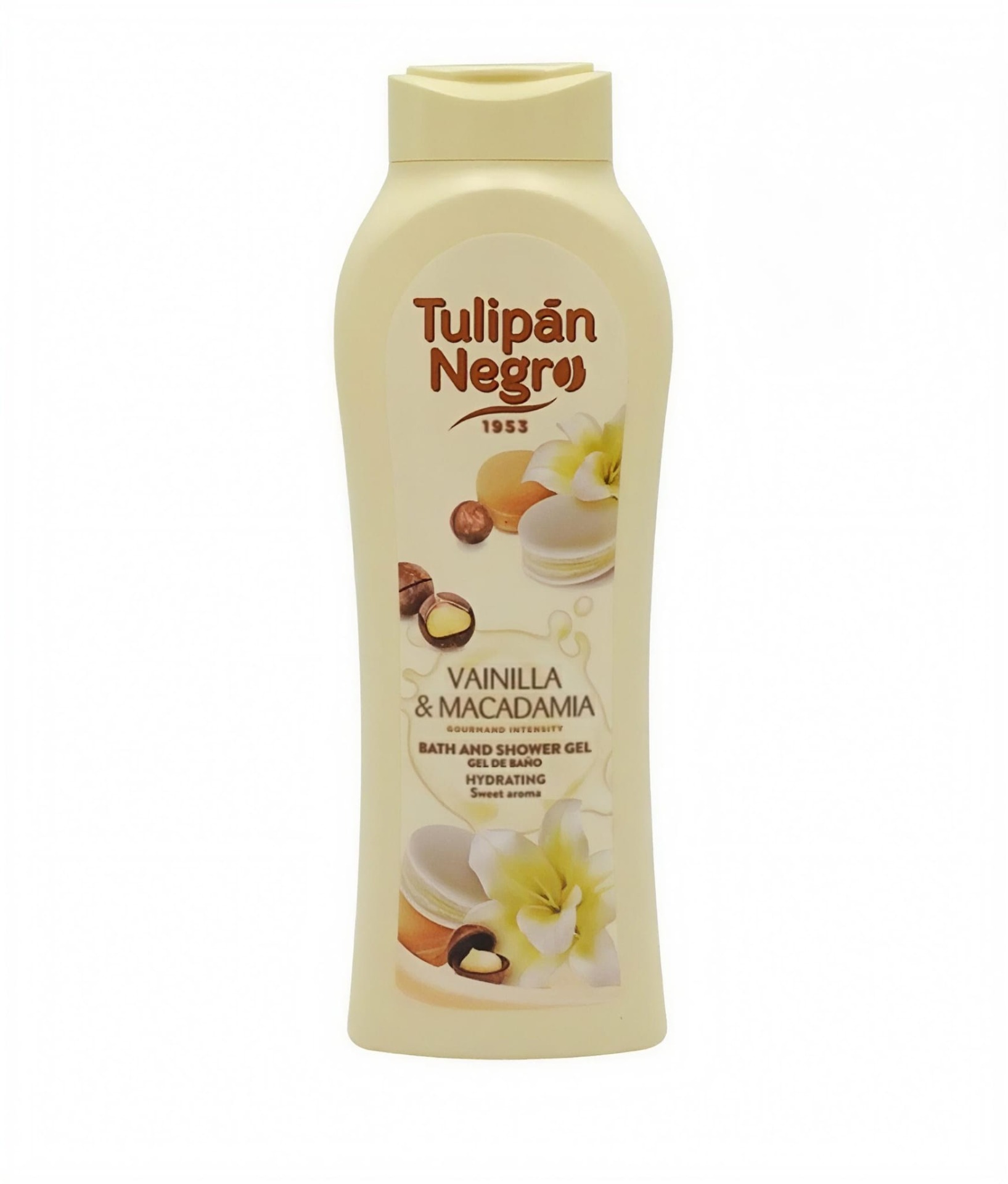 Oază de Răsfăț Sub Duș: Tulipán Negro Vanilie & Macadamia 650mlTransformați rutina de igienă într-un moment de pură plăcere cu gelul de duș Tulipán Negro în aroma irezistibilă de Vanilie și Macadamia! piele.