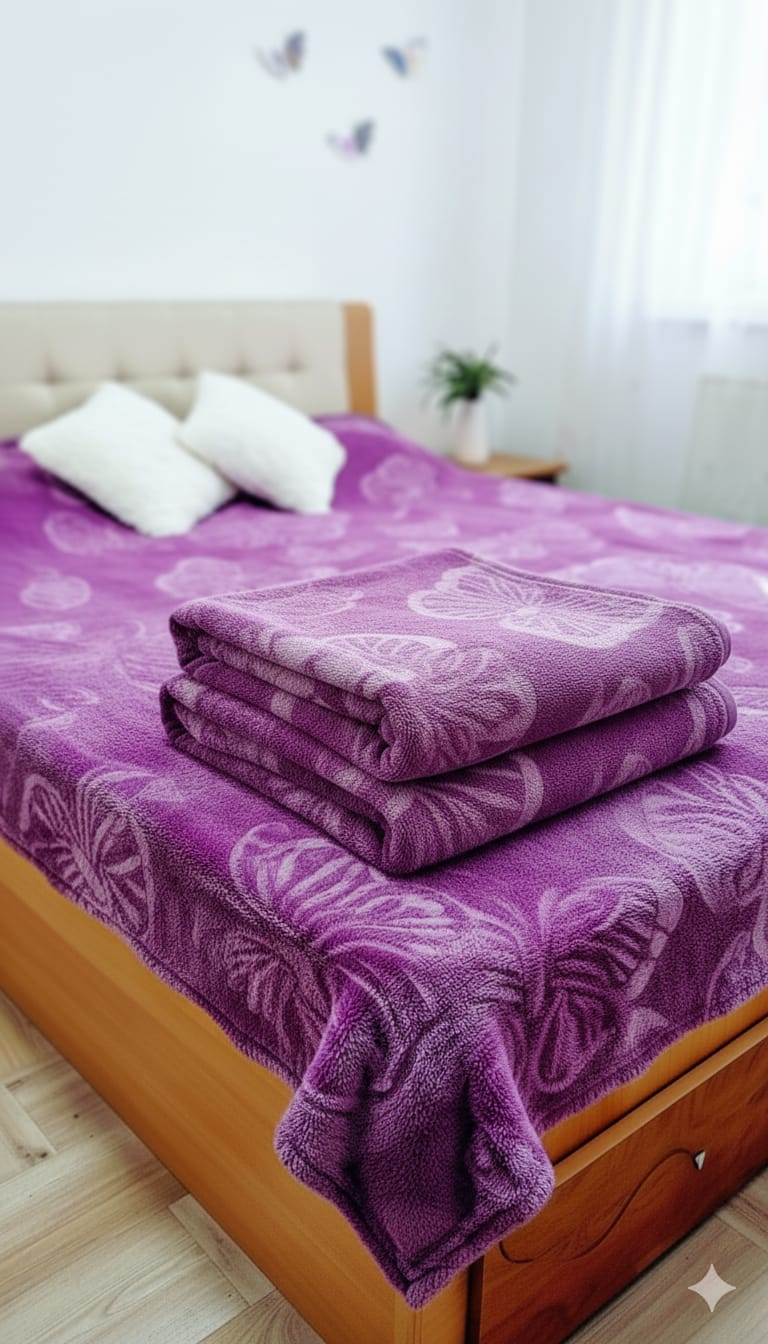 Patura Cocolino super pufoasa pentru pat dublu, model fluturi, 200x220, Mov Pret redus 68,99 RON 119,00 RON