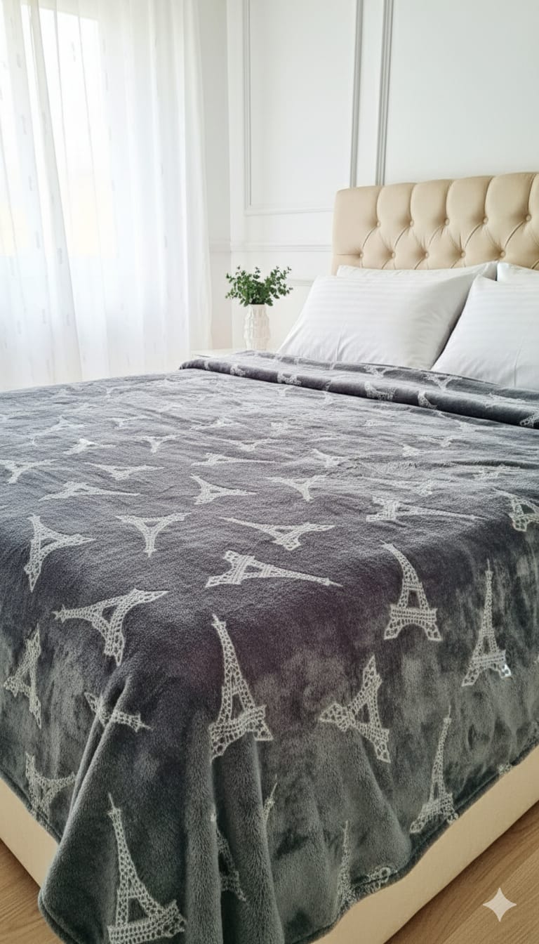 Patura Cocolino super pufoasa pentru pat dublu, model Turn Eiffel 200x220 cm, Gri Pret redus 66,90 RON 119,00 RON