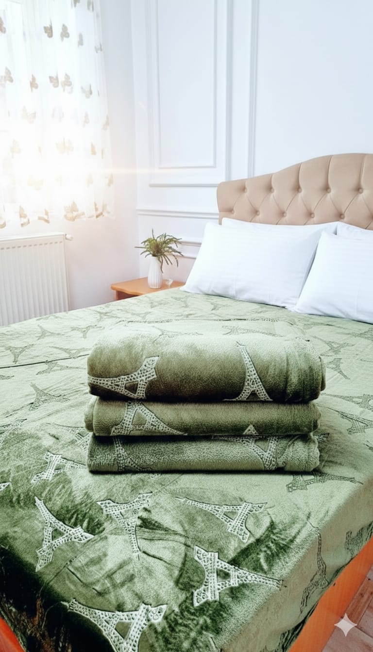 Patura Cocolino super pufoasa pentru pat dublu, model Turn Eiffel 200x220, Verde Pret redus 66,90 RON 119,00 RON