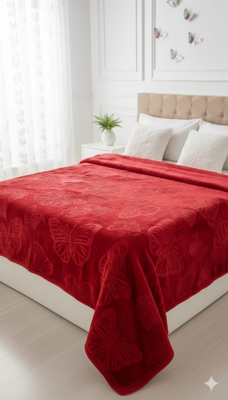 Patura Cocolino super pufoasa pentru pat dublu, model fluturi 200x220, Rosu Pret redus 66,90 RON 119,00 RON